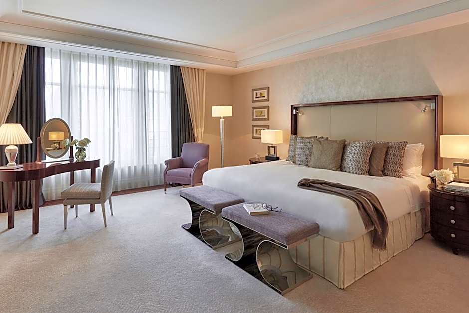 The suite offers a separate bedroom or lounge, dressing room, stereo system, second toilet, and courtyard views.
